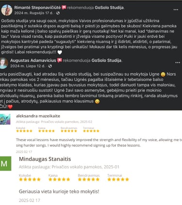 Muzikos studija „GoSolo“ siūlo plačią muzikinių žinių ir įgūdžių spektrą, skirtą tiek pradedantiesiems, tiek patyrusiems muzikantams, neatsižvelgiant į amžių. Mūsų mokytojai yra profesionalūs ir pasiruošę padėti jums išugdyti ir plėtoti jūsų muzikinius gebėjimus.